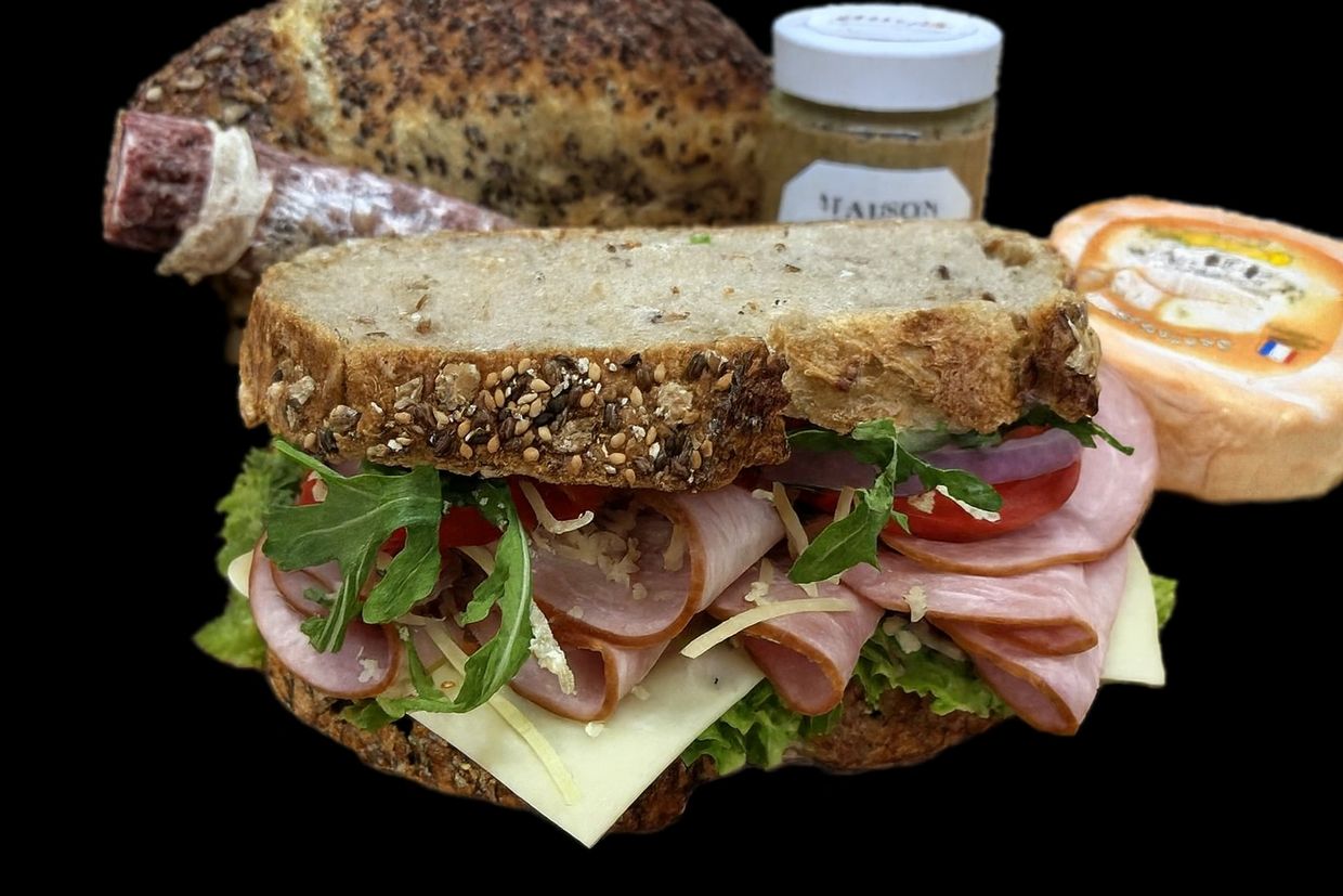 This delightful bread is the perfect vessel for our mouth-watering French traditional sandwich, perfectly golden and crisp on the outside yet wonderfully soft and airy on the inside. You choice perhaps cultured butter, meat and cheese add some caramelized onions, cracked black pepper, lettuce, can you imagine sinking your teeth into this. But that's not all, add more things you like to create a harmonious blend of flavors that will leave your taste buds dancing. This sandwich is a symphony of de